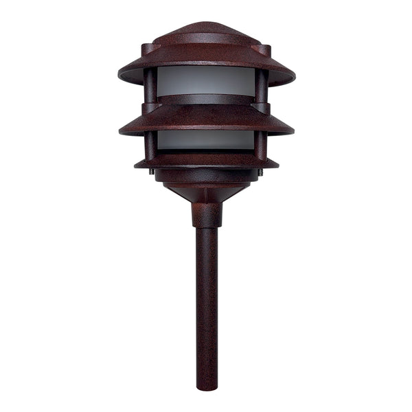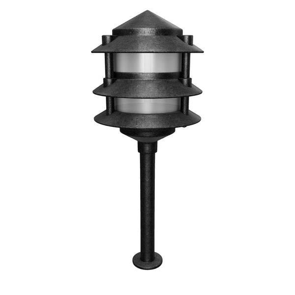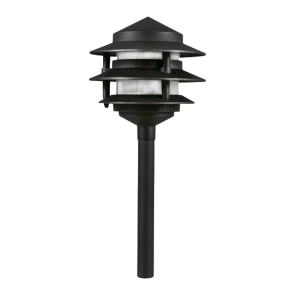 The CDPA72 3 Tier Black Pagoda mushroom landscape light is a perfect choice for an affordable, yet durable outdoor landscape lighting Fixture. This low-voltage pagoda landscape light with a 3-tier light has a timeless design. It's great for pathways, planters and driveways. The pagoda landscape light includes a 6" Height pole and ground stake. This high-quality landscape low voltage path light is made up of heavy-duty cast aluminum material which gives a solid construction for durability and longevity.