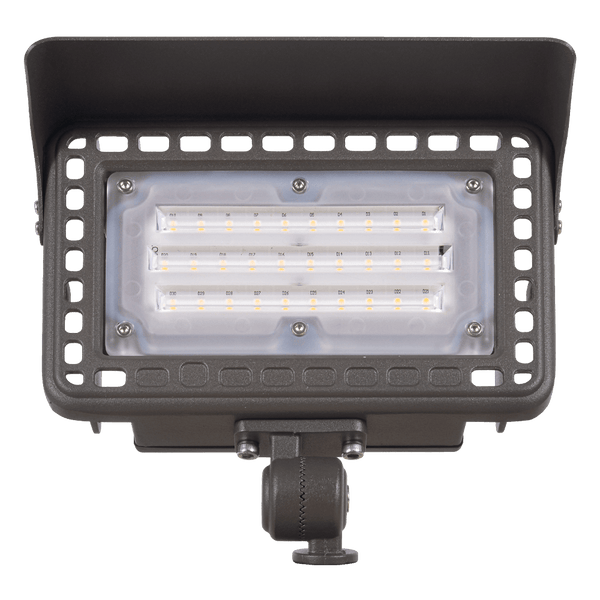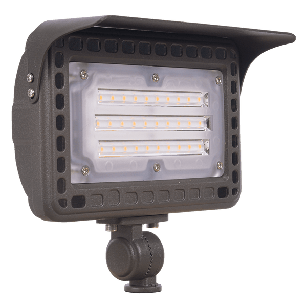 This light is a bright solution to efficiently illuminate building façade, flag poles, billboard signage, parking lots and many more traditional flood applications. The FLA40 LED Flood Light has a diverse portfolio of optical patterns available to maximize efficiency, highlight effectively, and beautifully illuminate a range of diverse application spaces. Its heavy-duty cast Aluminum body has a bronze finish that provides a strong construction for durability and longevity. Its point of direction can be changed to upward or downward.
