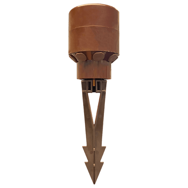 Features and benefits of our junction box hub system is that your connections are inside a sealed compartment/sealed body, contains a removable top, 8 rubber cap sealed cable entrance/exit holes, and a brass threaded spike screws to stake into the ground (stake is included).