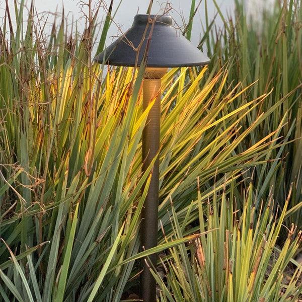 PLB02 LED mushroom path light is designed to illuminate your pathway or walkway so that you are safe to travel and tend to catch less attraction from burglars. It could also be one of your options to reduce your electricity bill. This low voltage path area light is made of Heavy-Duty Cast Brass and comes in a dark bronze or natural bronze finish. This makes the light more attractive.