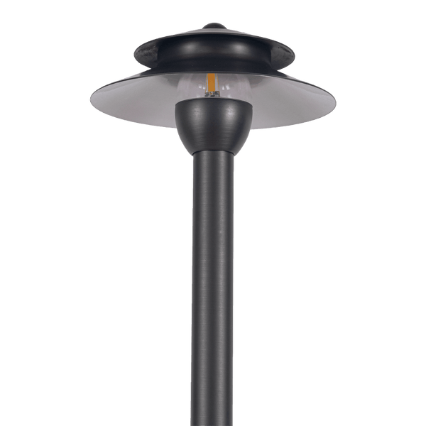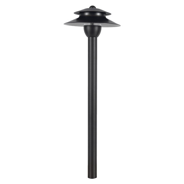 PLB13 pagoda two-tier path lights will accentuate a feeling of retro warmth with its classic brass finishing pagoda-style design to your exterior space. This high-quality LED landscape path light's body is made of heavy-duty cast brass, no powder coating just the natural patina beauty of brass which gives a solid construction for durability and lifetime of beauty.