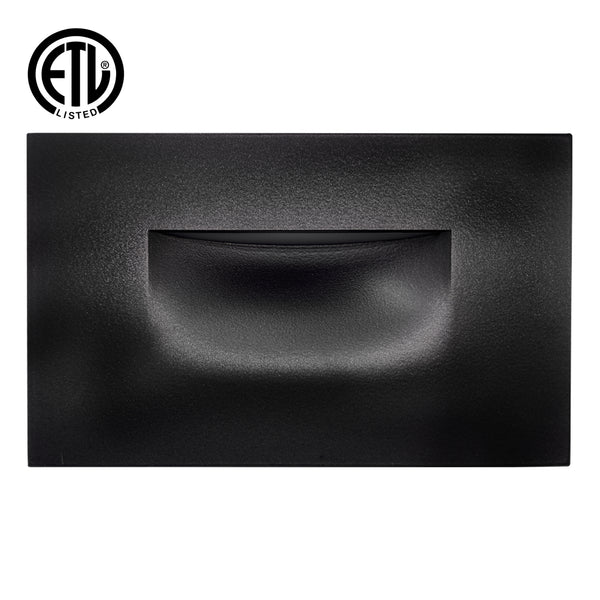The size of this horizontal LED step light is 2.875 (H) x 4.75” (W) x 1.5” (D). It's the perfect size for a standard bell box, so its location can be pre-installed and wired and ready for the fixture installation. This rectangular step light has a waterproof rating of IP65 so the moist weather won't be a fact to damage. The short cable is connected from its backside for low voltage connection. This high-quality product will serve you greatly.
