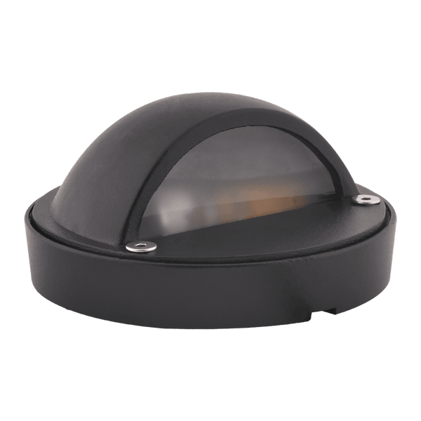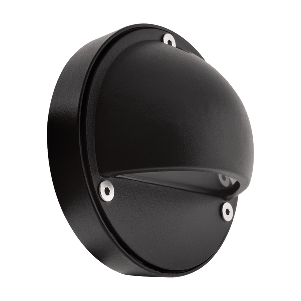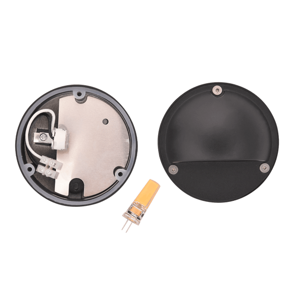 This high-quality retro-style 12V round half-moon step light is made of heavy-duty cast aluminum with a black powder coating finish. Easy to assemble. Bi-pin base G4 12V LED Bulbs can be added which brings a cozy ambiance, achieving an excellent illumination effect for you. Its size is 4" (Diameter) x 2" (Height) and ETL listed.