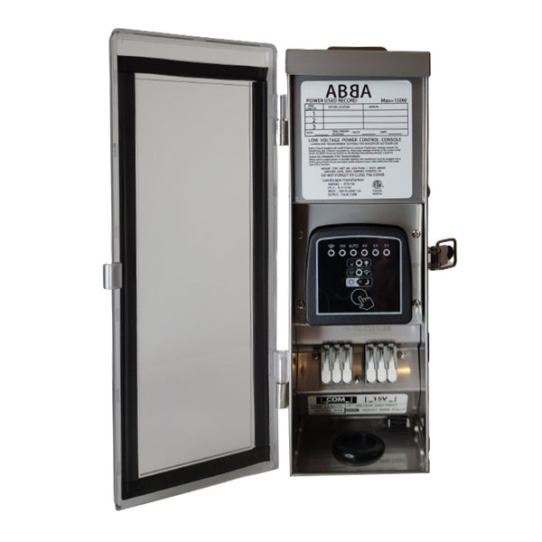This heavy-duty 150 Watt stainless steel low voltage digital transformer is an energy-efficient, safe, reliable outdoor transformer with 12V and 15V Output. It has a Plug-in photocell and digital timer and also 40" Plug-in 3 prongs cord is included.