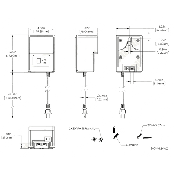Enjoy a flawless voltage conversion with a 200-watt low voltage digital transformer which is built with a toroidal coil to ensure efficiency and reduce resistive and winding losses. With this low voltage step down 12V transformer, you can easily convert national standard AC 120-volt input to 12 Volt outputs. Heavy-duty commercial grade plastic made digital transformer has a built-in photocell and 1-9 hour timer and a 6' cord is included.