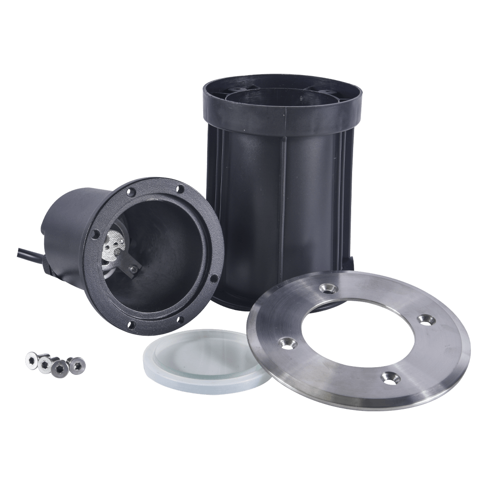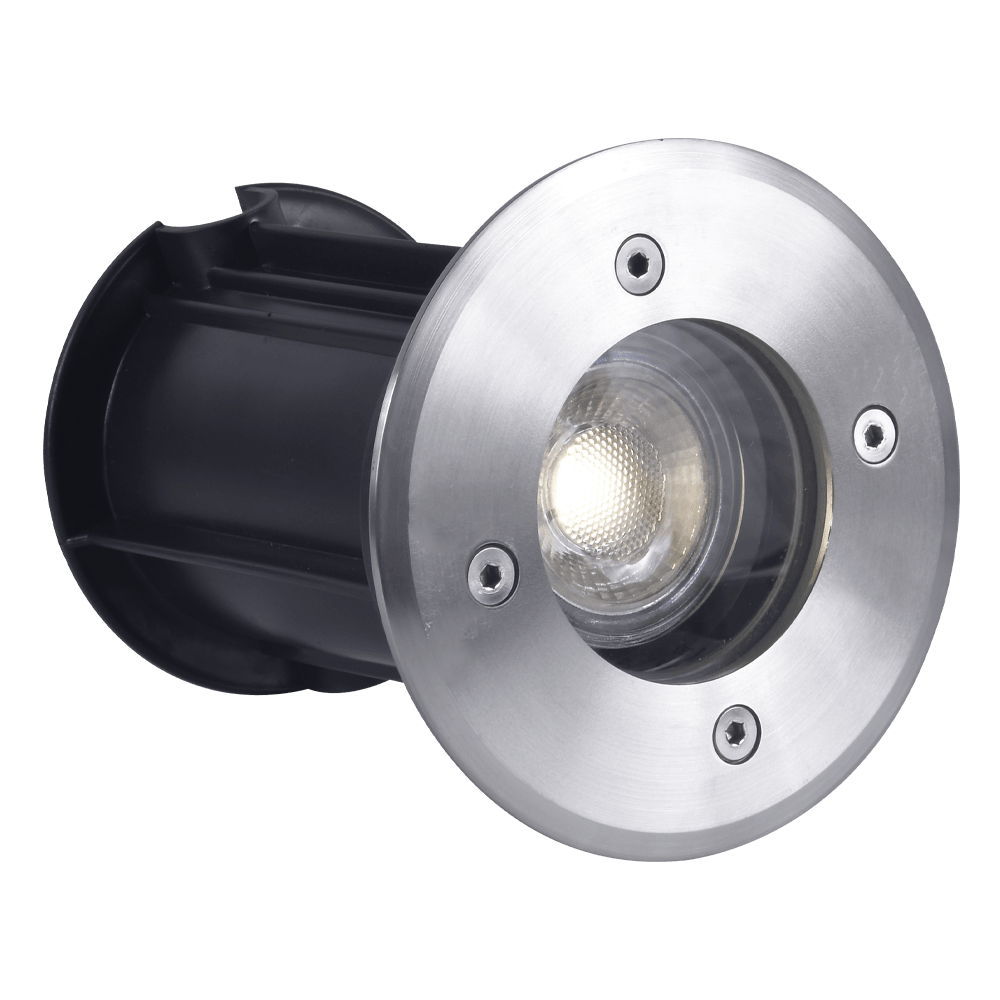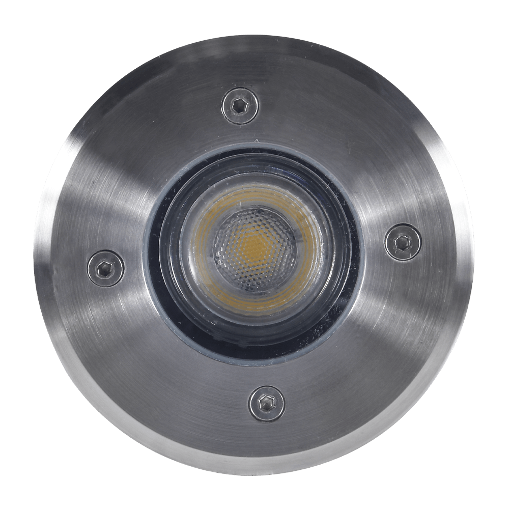 UNS02 underground LED energy-saving light offers you an opportunity to brighten trees and walls with a flush ground light. With a 5W MR16 LED added it gives 3000K warm white light color temperature that makes a cozy atmosphere around it.