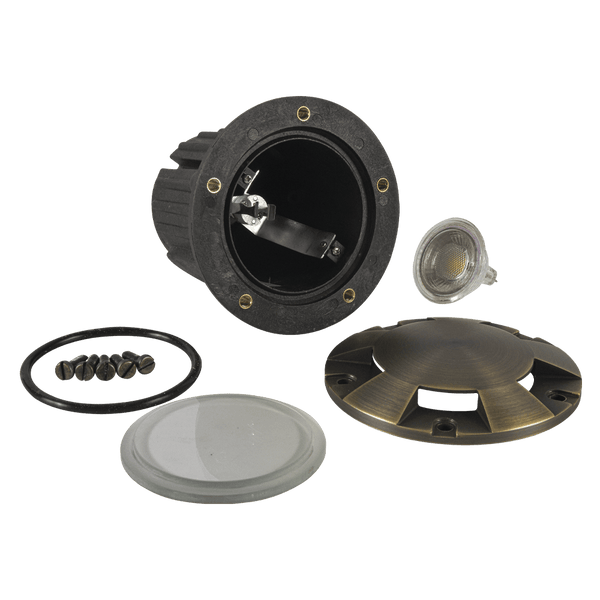 This strong high-quality Underground Well Light fixture will enlighten your outdoor space with its sophisticated look and durable design. This landscape LED underground light is made up of heavy-duty cast brass material with a Natural Brass finish and a multi directional face containing 5 slits which gives an elegant design with the illuminated light.