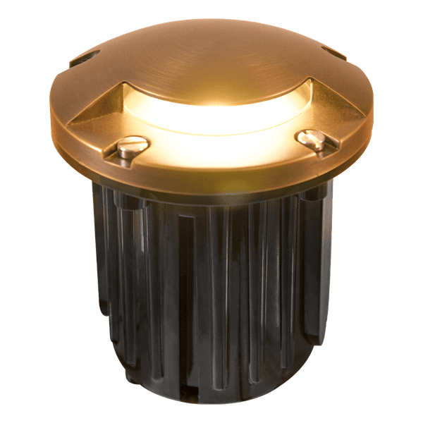 This landscape LED underground light is made up of heavy-duty cast brass material with a Dark Brass finish and a uni directional face containing one slit which gives an elegant design with the illuminated light.